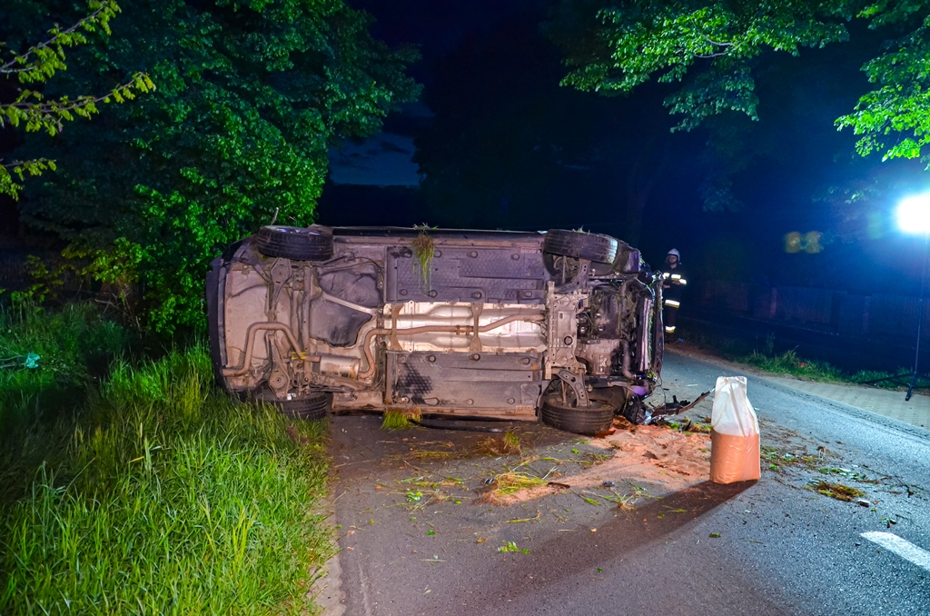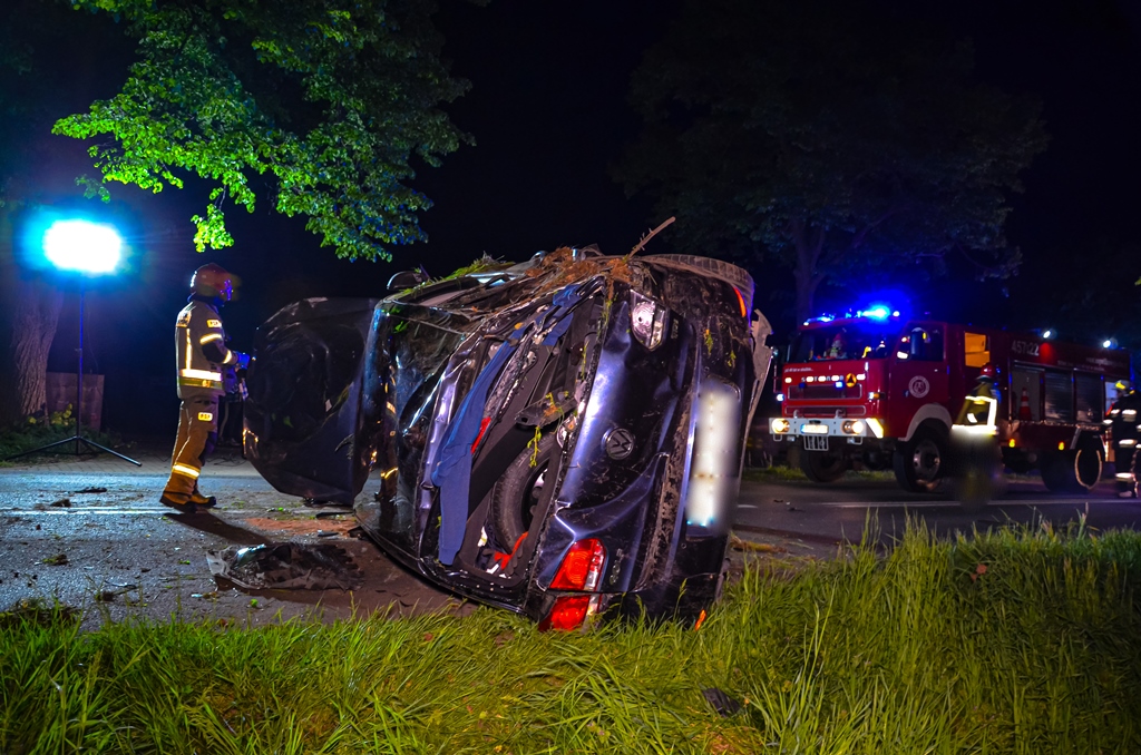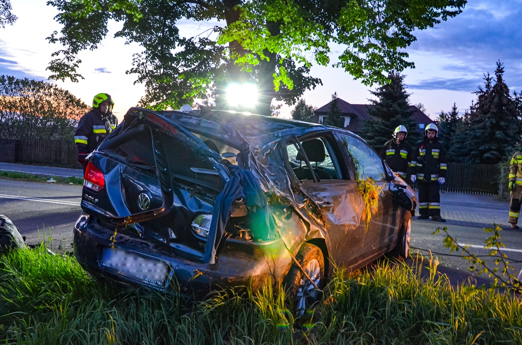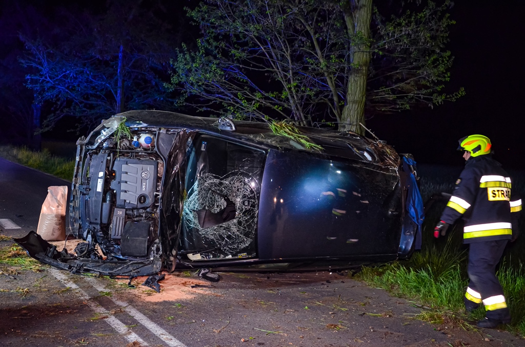 Około 2.30 służby otrzymały zgłoszenie o samochodzie, który dachował na drodze Żerków – Wilkowyja. Niezwłocznie na miejsce zdarzenia zadysponowano 4 zastępy straży pożarnej, zespół ratownictwa medycznego oraz policję. Poszkodowanego kierowcę z obrażeniami ciała przewieziono do szpitala w Jarocinie. Tam również udał się patrol policji, który przeprowadził badania alkomatem i ustalił, że kierujący jest nietrzeźwy.