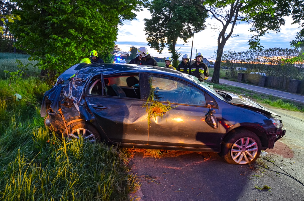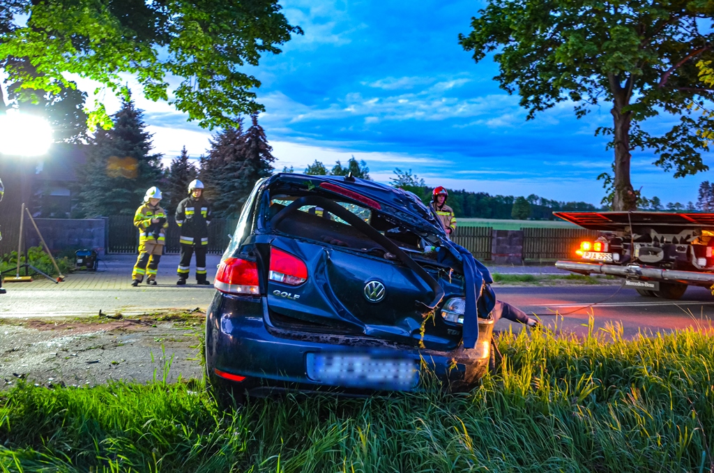 Prawie 200 metrów jazdy przydrożnym rowem zakończone dachowaniem tak wyglądał rajd nietrzeźwego kierującego Volkswagenem Golfem na drodze Żerków – Wilkowyja.