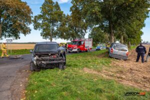 W wyniku wypadku dwie osoby zostały poszkodowane i po udzieleniu pierwszej pomocy na miejscu zostały przetransportowane przez zespoły ratownictwa medycznego do szpitala w Jarocinie. Trzecia osoba nie odniosła poważniejszych obrażeń.
