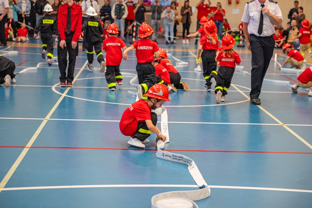 Zawody halowe były nie tylko okazją do sprawdzenia swoich umiejętności, lecz także do wspólnej zabawy i integracji najmłodszych członków strażackiej społeczności. Dziecięce Drużyny Pożarnicze to doskonała szkoła współpracy, dyscypliny i odpowiedzialności, a takie wydarzenia pokazują, jak wielką pasją i zaangażowaniem młodzi druhowie podchodzą do strażackiego rzemiosła. Wszystkim uczestnikom należą się ogromne gratulacje za włożony wysiłek i sportową postawę.