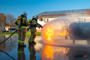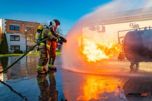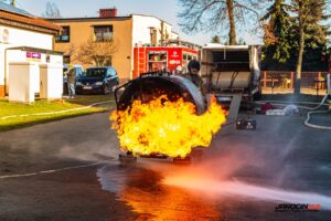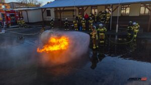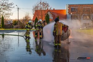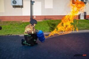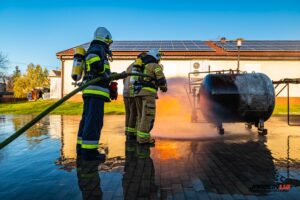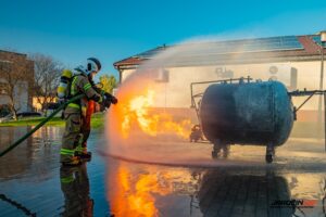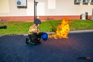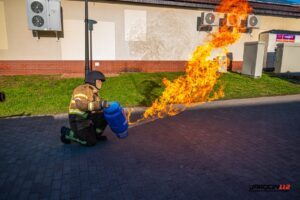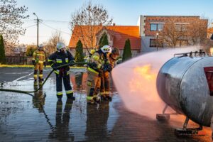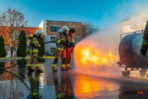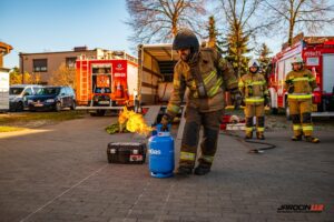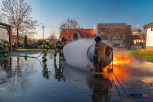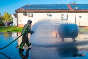 Podczas szkolenia wykorzystano profesjonalny trenażer LPG, dzięki któremu druhowie mogli w realistycznych i kontrolowanych warunkach przećwiczyć właściwe metody gaszenia, chłodzenia zbiorników, a także zasady bezpiecznego podejścia do instalacji i butli gazowych objętych ogniem. Ćwiczenia obejmowały zarówno teorię, jak i intensywną część praktyczną.
