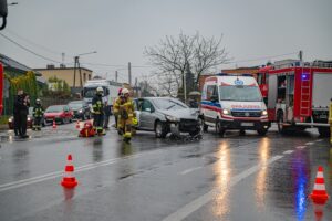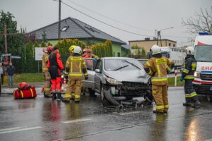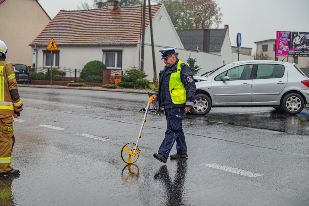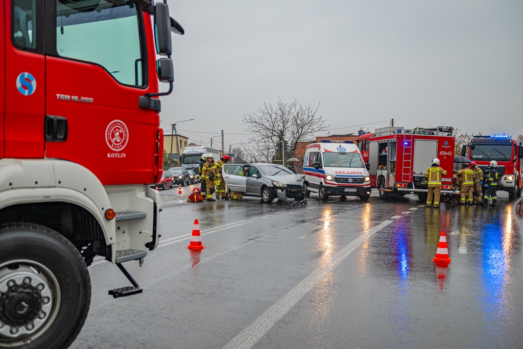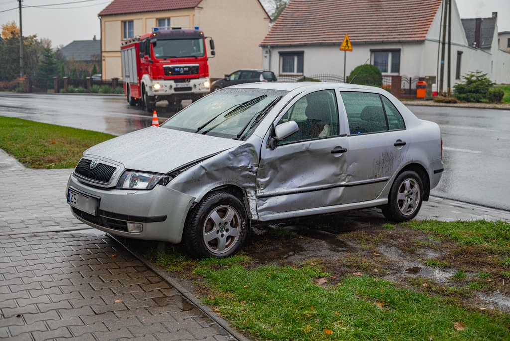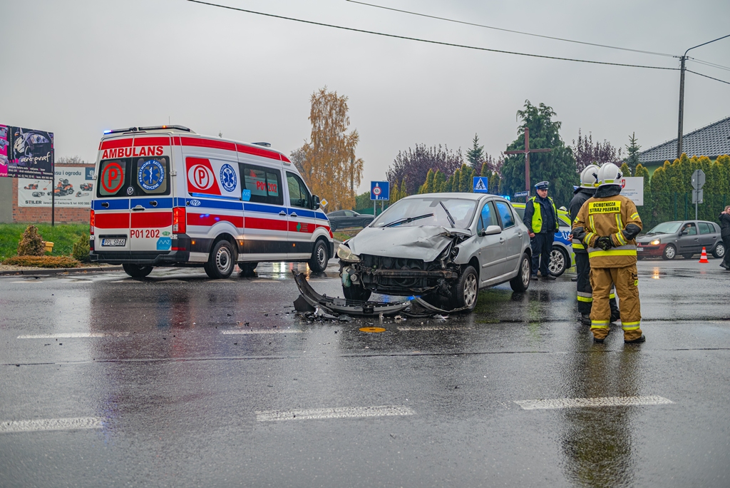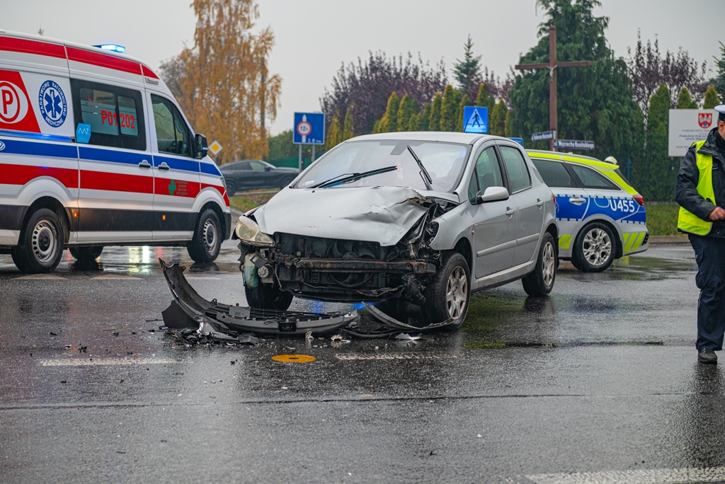 W niedzielne popołudnie, 2 listopada 2025 roku, na skrzyżowaniu ulic Kościuszki i Poznańskiej w Kotlinie – w ciągu drogi krajowej nr 11 – doszło do zderzenia dwóch samochodów osobowych: skody i peugeota.