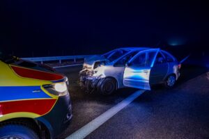 Pierwsze zdarzenie miało miejsce około godziny 21:30 na pasie ruchu od Poznania w kierunku Jarocina. Samochód osobowy uderzył w barierkę energochłonną. Pojazdem podróżowały dwie osoby. Na szczęście nikt nie odniósł obrażeń.