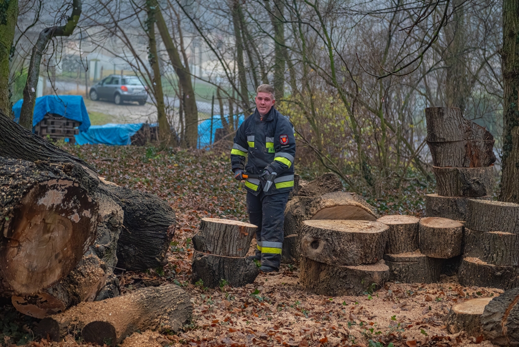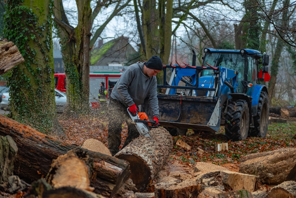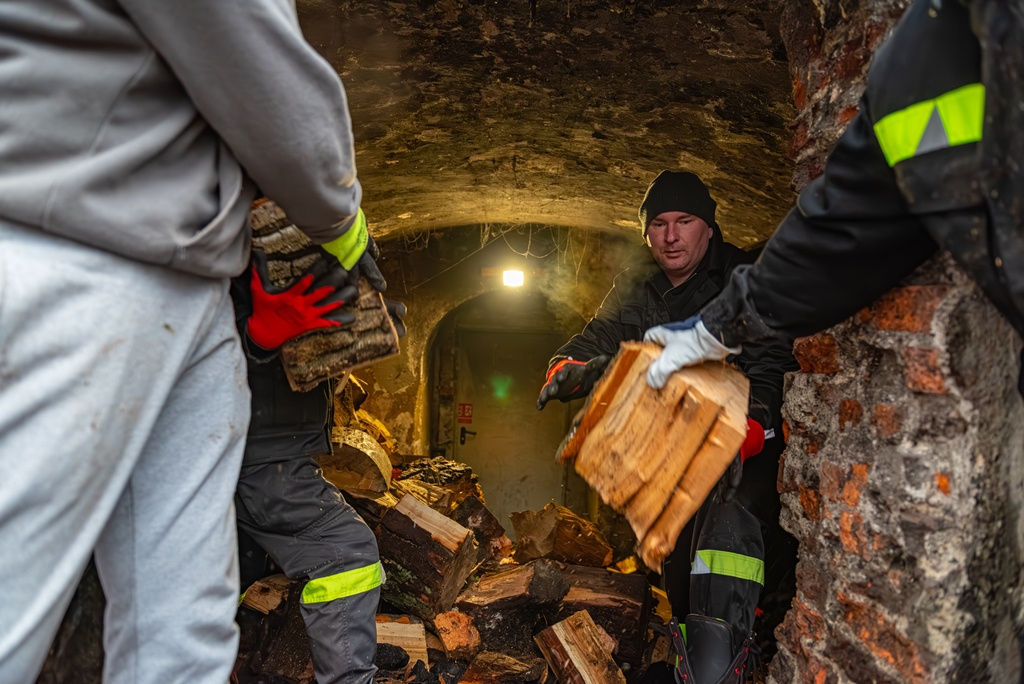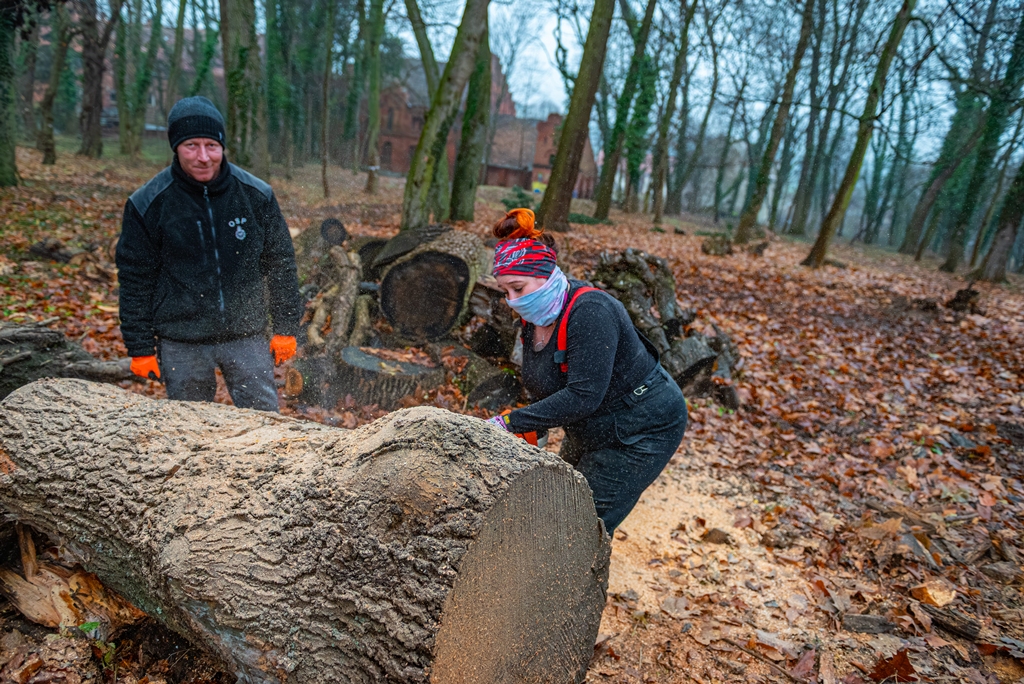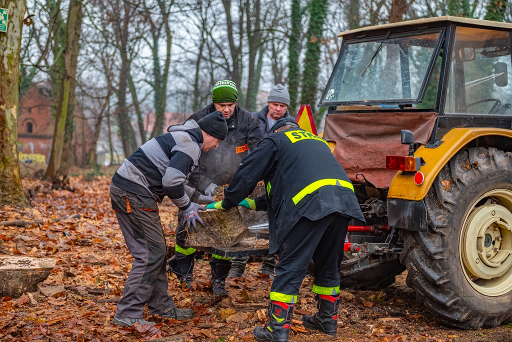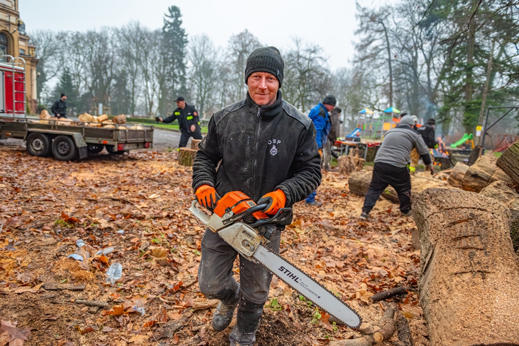 Na terenie parku, na którym znajduje się placówka, strażacy przeprowadzili prace polegające na pocięciu i porąbaniu drzewa. Pozyskany w ten sposób materiał zostanie wykorzystany jako opał, co realnie wesprze funkcjonowanie domu dziecka w okresie zimowym.