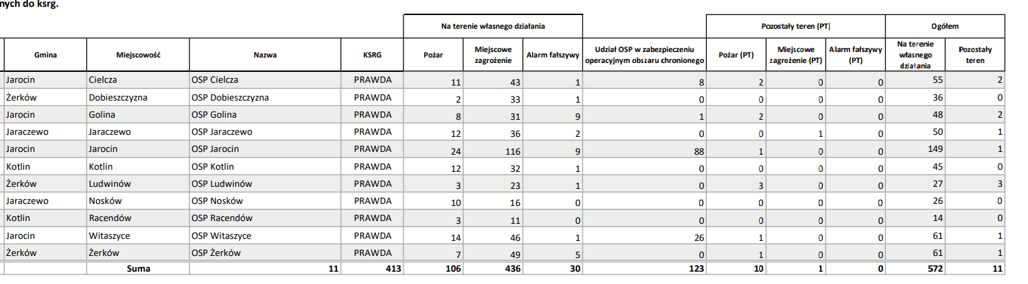 Poniżej prezentujemy statystkę wyjazdów dla poszczególnych jednostek OSP z terenu powiatu jarocińskiego.