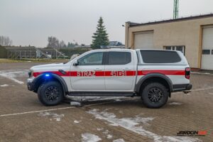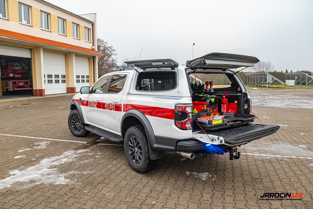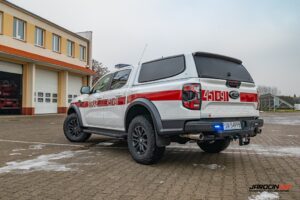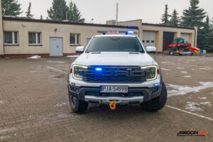 Jednym z kluczowych elementów nowego wyposażenia jest fabrycznie nowy samochód rozpoznawczo-ratowniczy typu pick-up marki Ford Ranger Raptor. Pojazd napędzany jest 3-litrowym silnikiem i posiada automatyczną skrzynię biegów, co zapewnia wysoką mobilność zarówno na drogach, jak i w trudnym terenie. Zakup obejmował nie tylko sam pojazd, ale również jego specjalistyczne wyposażenie, w tym nowoczesny bezzałogowy statek powietrzny.
