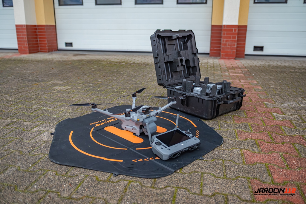 Szczególnie istotnym wzmocnieniem potencjału operacyjnego jest nowoczesny bezzałogowy statek powietrzny DJI Matrice 4TD wraz z aparaturą sterującą DJI RC Plus 2. Jest to pierwszy tego typu sprzęt, który trafił na wyposażenie jarocińskiej Jednostki Ratowniczo-Gaśniczej. Dron będzie wykorzystywany podczas działań ratowniczo-gaśniczych, poszukiwawczo-ratowniczych oraz w trakcie rozpoznania i monitorowania zagrożeń. Dzięki kamerze termowizyjnej umożliwi szybkie lokalizowanie ognisk pożaru oraz osób poszkodowanych, również w warunkach ograniczonej widoczności. Kamera dzienna i teleobiektyw pozwolą na bezpieczne prowadzenie rozpoznania z powietrza, bez narażania ratowników.