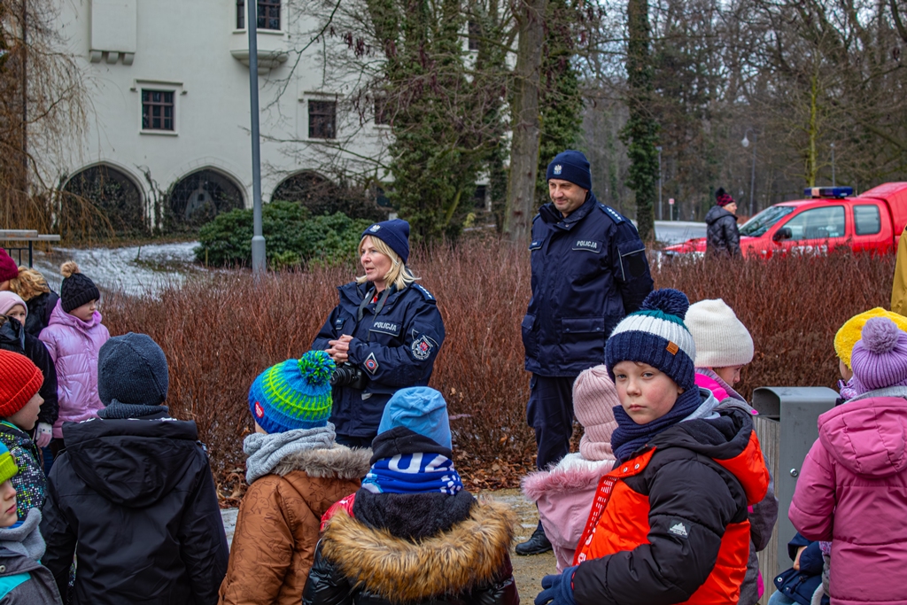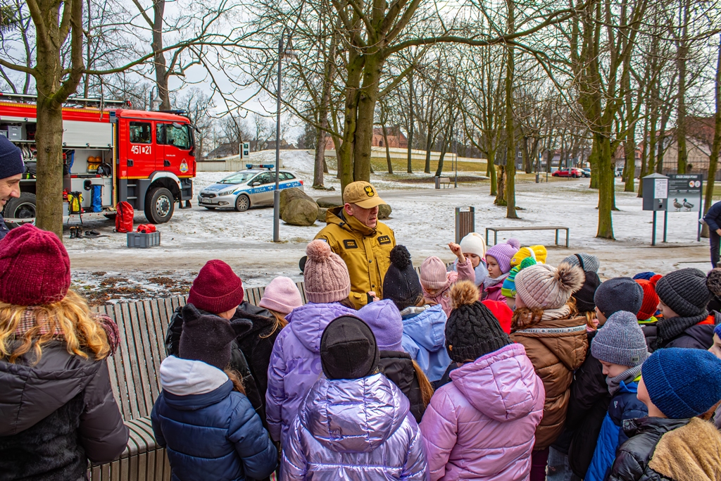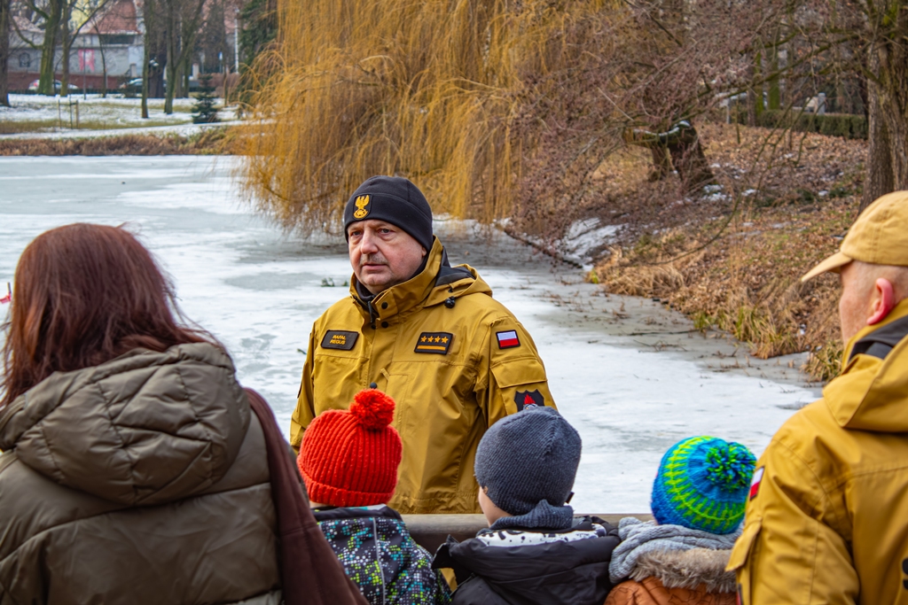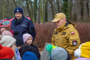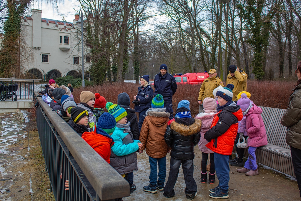 Spotkanie odbyło się na stawie w Parku Radolińskich w Jarocinie, gdzie funkcjonariusze omówili najważniejsze zagrożenia związane z okresem zimowym, w tym bezpieczeństwo na drogach, w miejscu zamieszkania oraz podczas zabaw na świeżym powietrzu. Szczególną uwagę zwrócono na ryzyko związane z wchodzeniem na zamarznięte zbiorniki wodne.