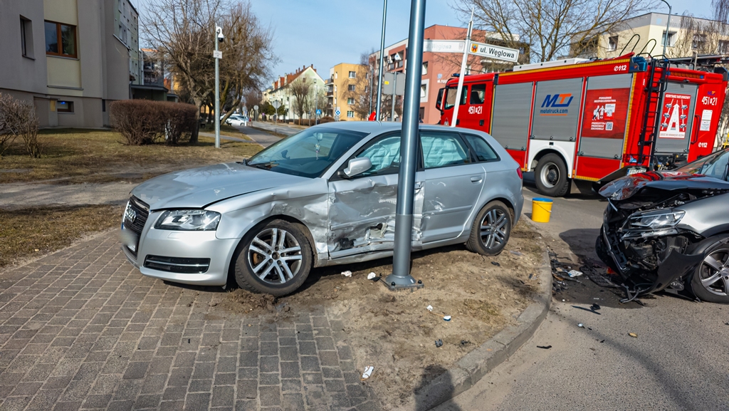 W niedzielę 1 marca 2026 roku około godziny 12.30 na skrzyżowaniu ulic Węglowej i Tadeusza Kościuszki w Jarocinie doszło do zderzenia dwóch samochodów osobowych –seata i audi.