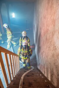 Program ćwiczeń był szeroki i obejmował kilka kluczowych obszarów. Strażacy pracowali nad taktyką zwalczania pożarów wewnętrznych oraz doskonalili działania w aparatach ochrony układu oddechowego. Nie zabrakło także zagadnień z zakresu ratownictwa technicznego i medycznego.