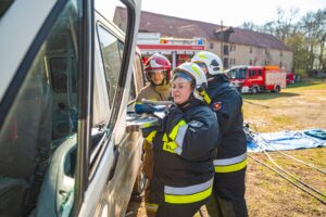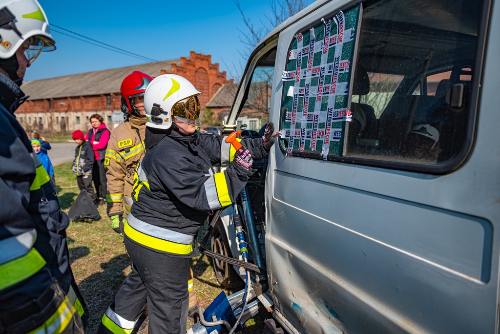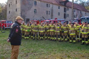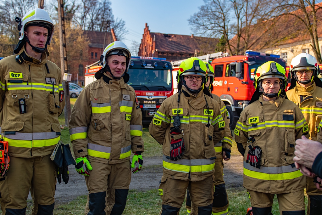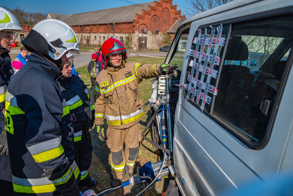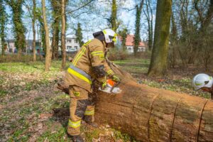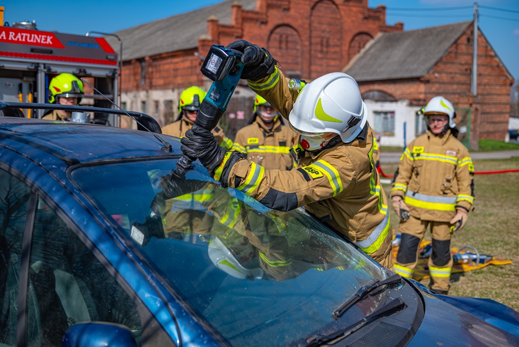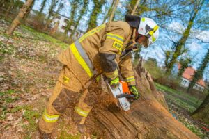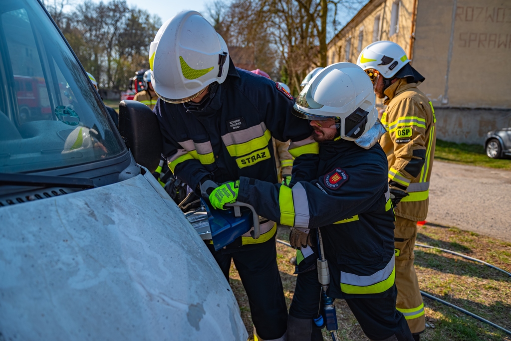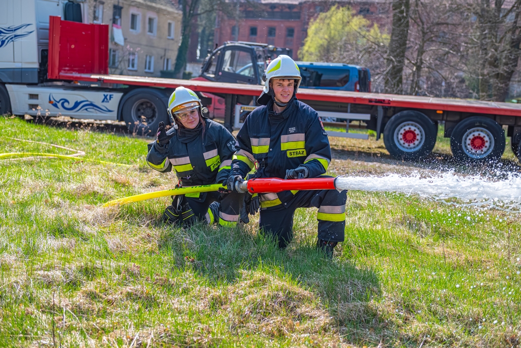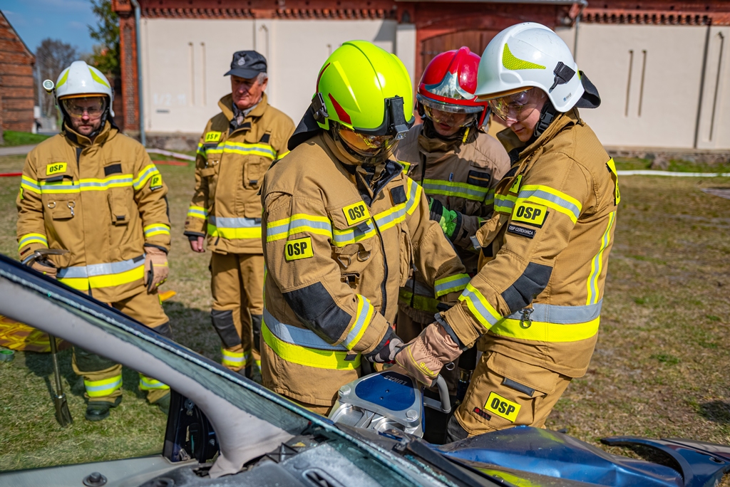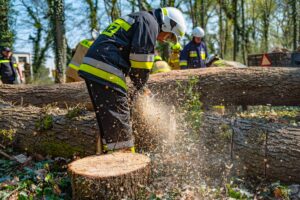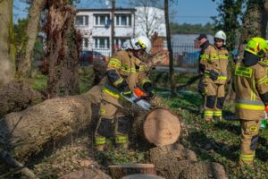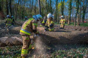 W ramach części praktycznej druhowie przeprowadzili również ćwiczenia z obsługi pilarek spalinowych. W ich trakcie usunięto wiatrołomy znajdujące się w pobliskim parku. Pozyskane drewno zostało przekazane do miejscowego domu dziecka w Górze, gdzie będzie wykorzystane do ogrzewania budynku.