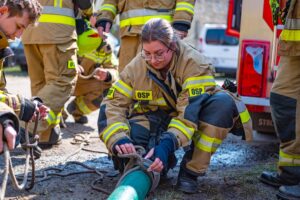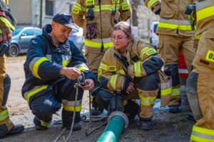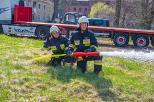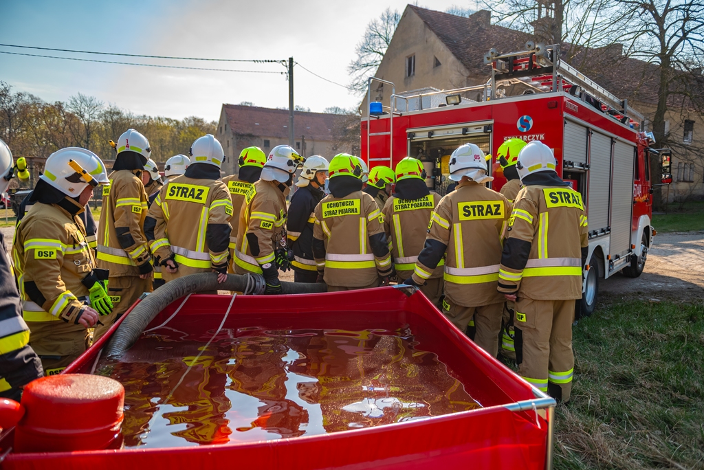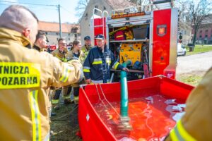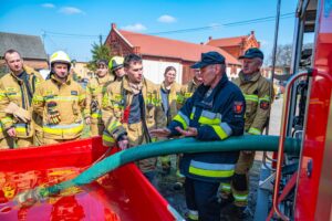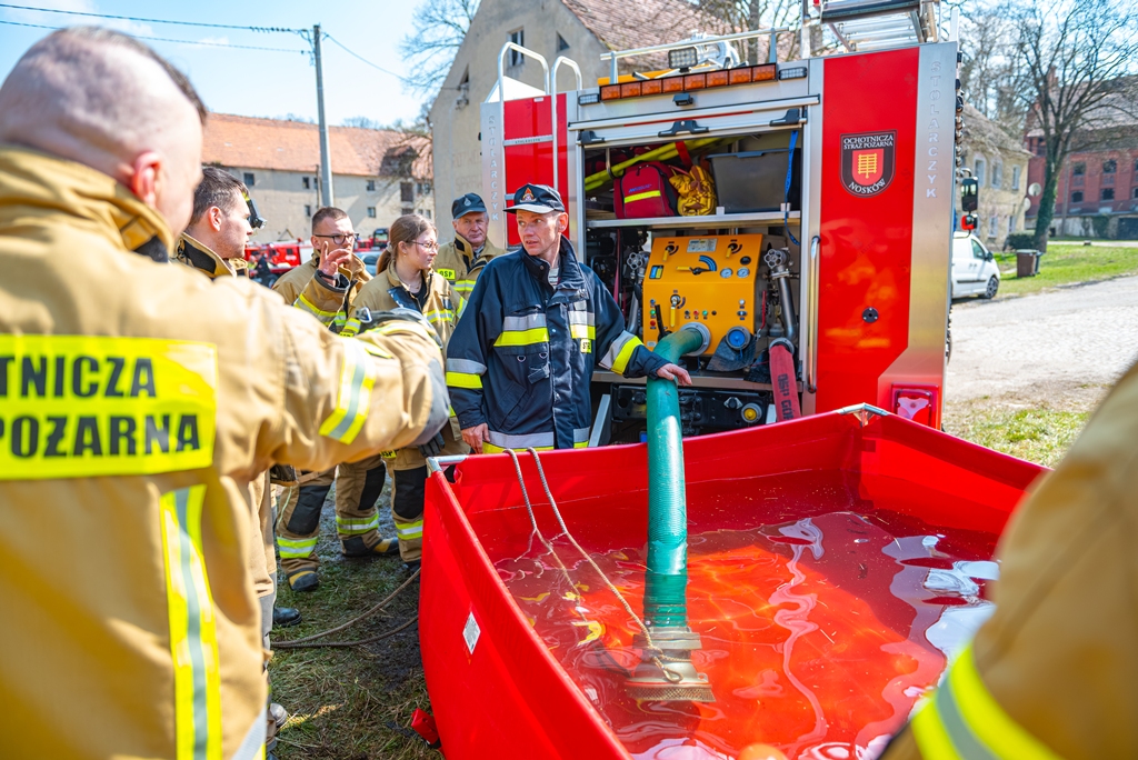 Na zakończenie strażacy przećwiczyli sprawianie linii ssawnej oraz przypomnieli sobie procedury zasysania wody ze zbiorników zewnętrznych przy użyciu autopomp zamontowanych w pojazdach ratowniczo-gaśniczych.