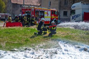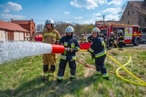 W sobotę 11.04.2026r. na terenie dawnej gorzelni w Górze odbyły się ćwiczenia dla jednostek Ochotniczych Straży Pożarnych z gminy Jaraczewo. W szkoleniu udział wzięło 13 jednostek OSP, a jego celem było doskonalenie praktycznych umiejętności potrzebnych podczas działań ratowniczo-gaśniczych.